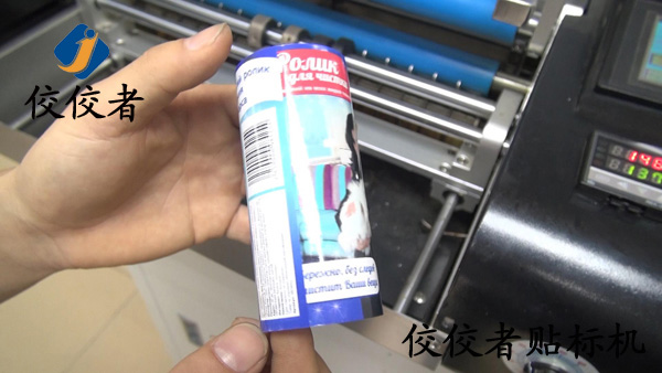 下圖是膠筒(塑料小圓筒)貼標(biāo)機(jī)貼標(biāo)樣品圖片:
