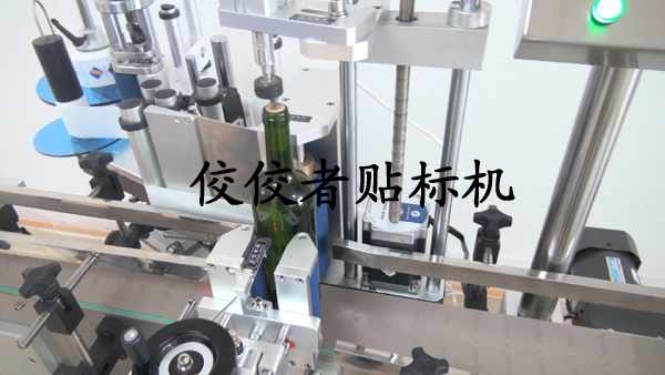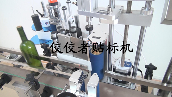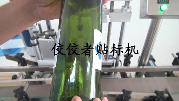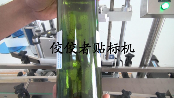 首先我們給大家展示一下為標(biāo)準(zhǔn)紅酒瓶貼標(biāo)的貼標(biāo)機(jī):