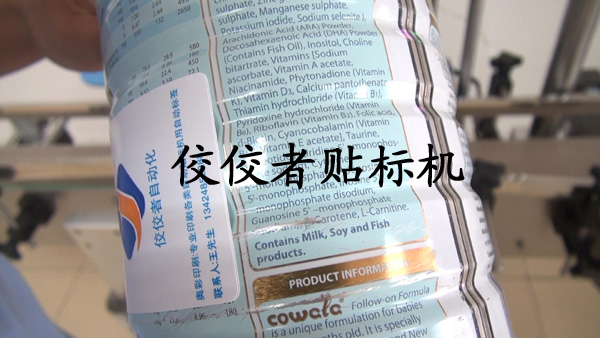 下面是貼奶粉罐的過程和效果,我們就稱之為奶粉罐貼標(biāo)機(jī),原理同上,請看下圖.